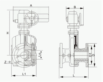 公稱 | 公稱 | 工作 | L | L1 | L0 | D | D1 | Z-Φ | H | 電動裝置 | ||||