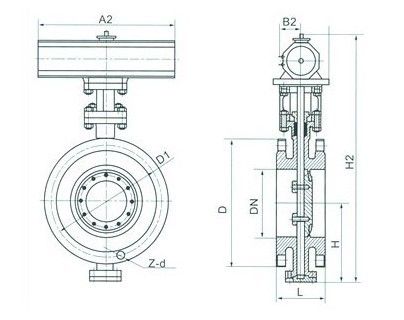 D643W 不銹鋼氣動硬密封法蘭蝶閥--主要連接及外形尺寸: