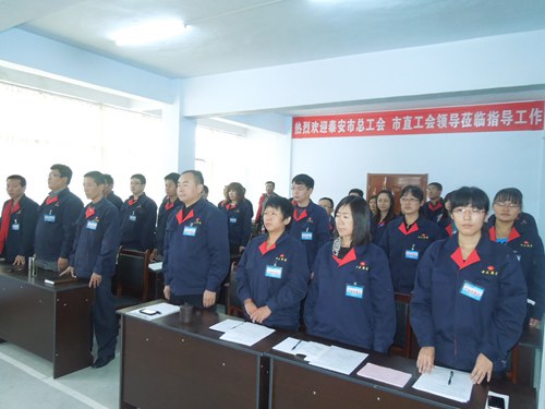 2012年10月16日上午9時30分,在集團(tuán)公司三樓會議室舉行山東中正熱力集團(tuán)工會成立暨一屆一次會員代表大會,泰安市總工會郭青副主席、泰安市直工會趙國強(qiáng)主任、集團(tuán)公司董事長李廣法同志、副總經(jīng)理葉恒剛、王曉東同志出席了代表大會。大會選舉成立了山東中正熱力集團(tuán)工會第一屆委員會、經(jīng)費(fèi)審查委員會和女工委員會。