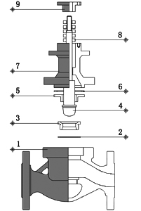 1 | 閥體 | WCB、CF8、CF8M、CF3 | 1 | 閥體 | WCB、CF8、CF8M、CF3 |