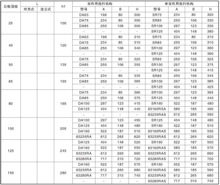 型 式 | DA、SR、RA、RAS單作用、雙作用活塞式執(zhí)行機(jī)構(gòu) |
