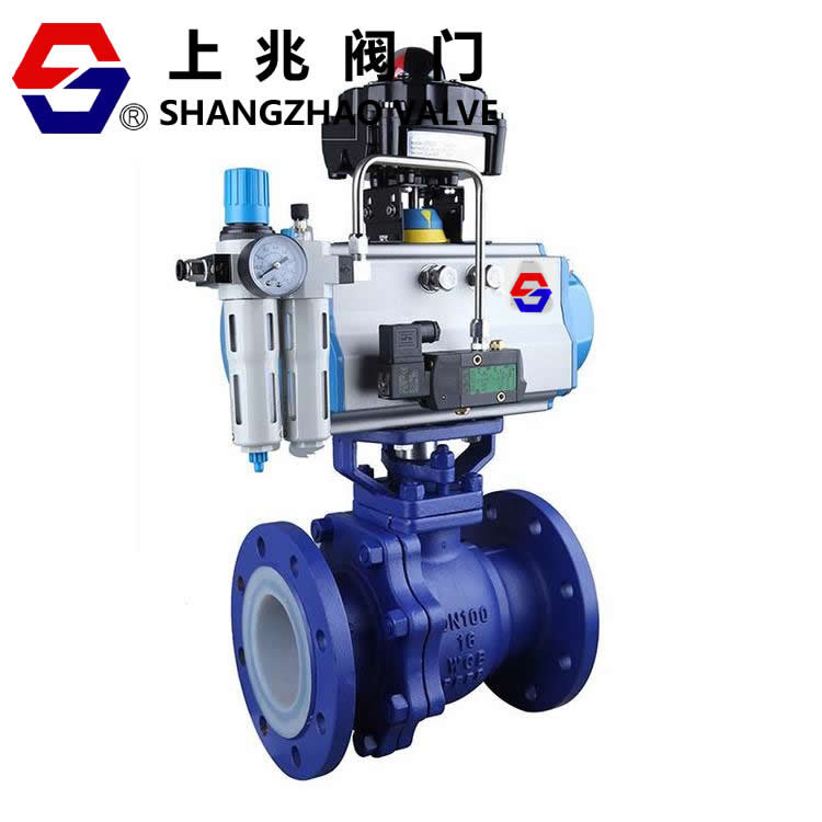 Q641F46襯氟氣動(dòng)緊急切斷閥是由角行程氣動(dòng)執(zhí)行機(jī)構(gòu)和襯氟球閥組成。襯氟球閥閥體材質(zhì)為碳鋼或者不銹鋼,內(nèi)襯聚四氟乙烯,作為耐腐性閥門首要選擇。氣動(dòng)襯氟球閥不僅可以在一般的液體、氣體場(chǎng)合下使用,在強(qiáng)酸、強(qiáng)堿的工作場(chǎng)合中被廣泛的使用。耐腐蝕球閥通過配閥門定位器,接收控制信號(hào)4-20mA,用來調(diào)節(jié)管道介質(zhì)流量,也可以通過電磁換向閥來控制開關(guān)。