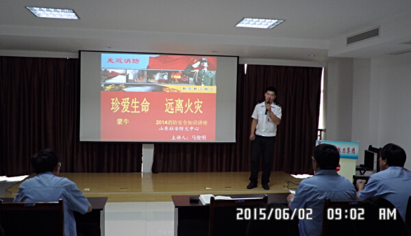 2015年6月2日上午九點,泰安市社安消防服務中心馬俊明教官為公司員工進行了一場專業(yè)、真實、生動的消防宣講,通過火災真實案例,重點講解了火災種類及發(fā)生原因、如何控制初期火災、自救逃生方法、消防器材應用等消防知識,告知大家生命只有一次,“珍愛生命,遠離火災”,不要懷有僥幸心理,敲響了預防火災的警鐘。通過此次消防知識講座,大家深有感觸,普及了消防知識,提高了消防安全意識,拉開了“安全生產(chǎn)活動月”的序幕。