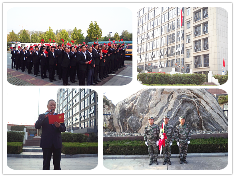 儀式上,集團(tuán)董事長李廣法發(fā)表莊嚴(yán)致辭。致辭中提到:“70年,路漫漫滄桑幾度,旗獵獵風(fēng)雨如磐;70年,中華兒女砥礪奮進(jìn)、眾志成城、攻堅(jiān)克難,為民族復(fù)興奮斗;七十年,強(qiáng)國征程波瀾壯闊,華夏巨變舉世矚目。中華民族從未像今天這樣,似騰飛的巨龍,像咆哮的雄獅,以東方巨人的英姿讓世界刮目相看,贏得世界尊敬;中國人民從未像今天這樣幸福和美、揚(yáng)眉吐氣,我們對(duì)國家和民族的前途充滿信心。”